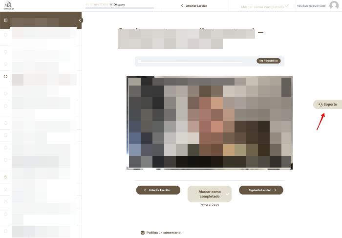 Así que mi propuesta fue simple: crear un botón a modo de pestaña que apareciese en todas las lecciones de LearnDash, que desplegase un popup desde el que el alumno pudiese enviar directamente su problema a soporte sin necesidad de salir de la página en la que estaba.